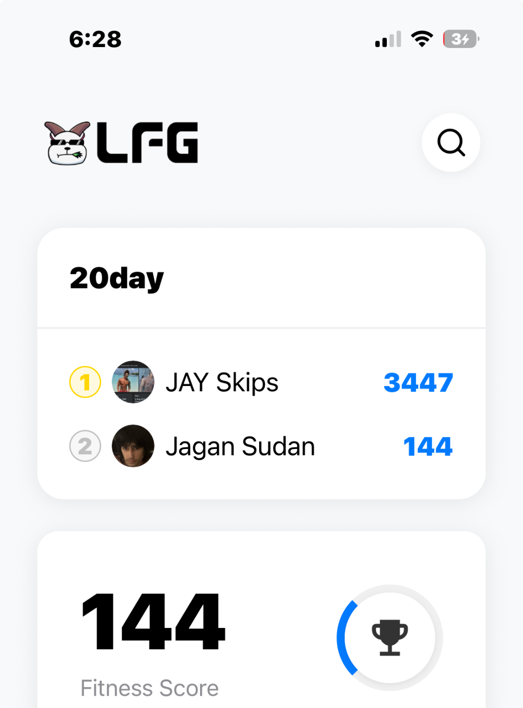 Log workouts, monitor your score, and watch your fitness improve daily.